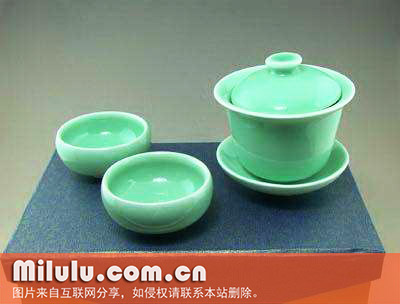 明代,青瓷茶具更以其质地细腻,造型端庄,釉色青莹,纹样雅丽而蜚声中外。16世纪末,龙泉青瓷出口法国,轰动整个法兰西,人们用当时风靡欧洲的名剧《牧羊女》中的女主角雪拉同的美丽青袍与之相比,称龙泉青瓷为“雪拉同”,视为稀世珍品。当代,浙江龙泉青瓷茶具又有新的发展,不断有新产品问世。这种茶具除具有瓷器茶具的众多优点外,因色泽青翠,用来冲泡绿茶,更有益汤色之美。不过,用它来冲泡红茶、白茶、黄茶、黑茶,则易使茶汤失去本来面目,似有不足之处。